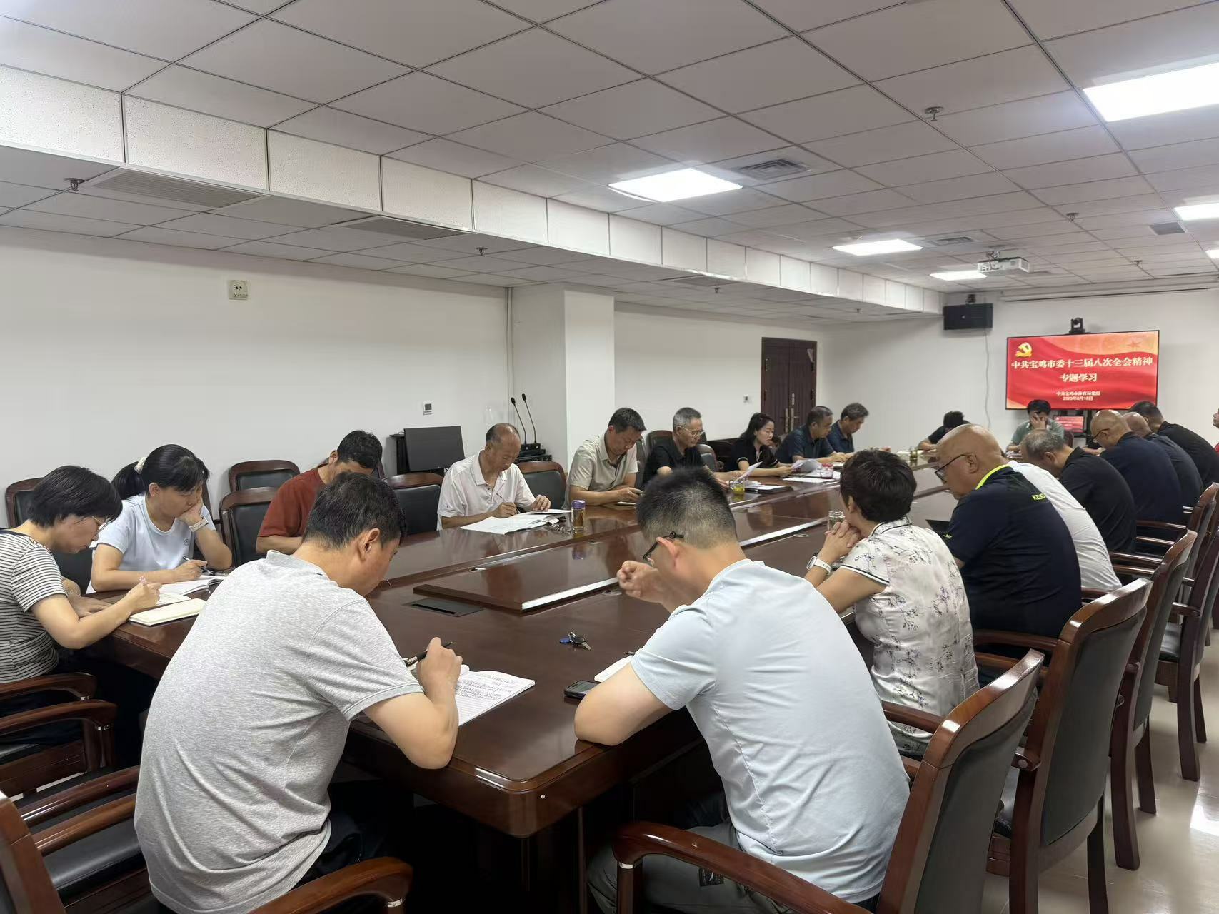 8月18日上午,宝鸡市体育局召开党组理论学习中心组学习会,专题传达学习市委十三届八次全体会议精神,研究部署贯彻落实举措。市体育局党组书记、局长毕周海主持会议并讲话。